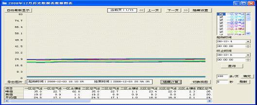 可显示出温室内各测量参数的日、月、季、年参数变化曲线,根据该曲线可合理的设置系统参数值,以及分析各参数变化对作物生长的影响。