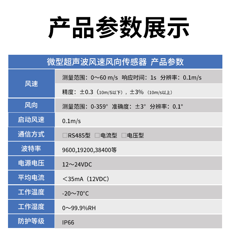 微型超声波风速风向传感器